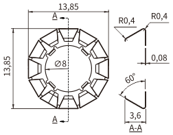 | FL-1005 | 13.8*3.6 | Beryllium copper, T=0.08mm | Tinned 2.5-7.5um | Blister tray | ![]() |