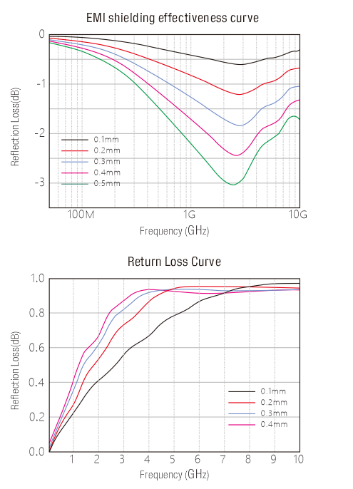 MI soft magnetic material is a high permeability and high magnetic loss material covering 100K to 8GHz wide frequency range. Substrate resin is filled with high loss absorbent and metal molecules. Molecules are re-arranged in order by special process. This material can restrain EMI waves bouncing back and forth. Noises then are converted to heat. This creates a clean EMI environment while maintaining electronic system normal operation.