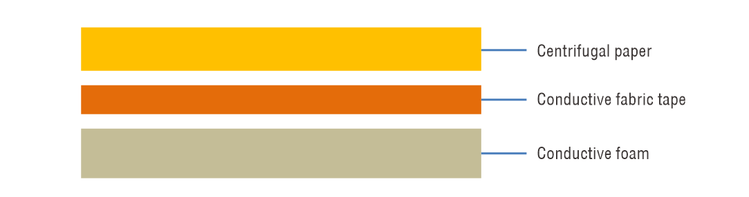 Aerobon ECF-P series omni-conductive material is made of polyurethane composite material through foaming technology. The sponge cell size is consistent. Material is soft, highly resilient, and strong corrosion resistance. The foam has big elasticity and favorable vibration-proof effectiveness. By electroplating the foam with conductive metal, the material becomes conductive. For assembly, conductive fabric normally is used as reinforcement layer of they PSA tape to be applied on the back of the conductive foam. The foam is electroplated. The electroplated coating has three layers which are respectively the nickel, copper, and nickel layers. The coating ensures the effective conductivity. The outermost nickel layer can also increase the antiseptic property of the material.