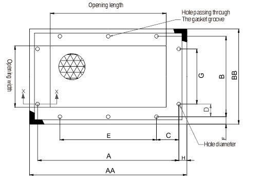 Dimensional drawing of standard frame Aluminium mesh ventilating board