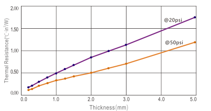 °C·in²/W | ASTM D5470 | 0.46 | 0.42 | 0.42 |