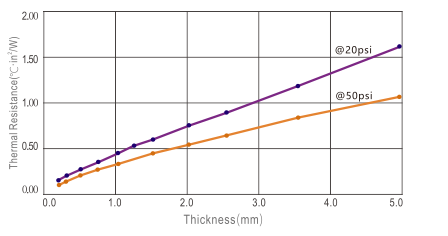 °C·in²/W | ASTM D5470 | 0.42 | 0.42 | 0.37 | 0.35 | 0.42 |