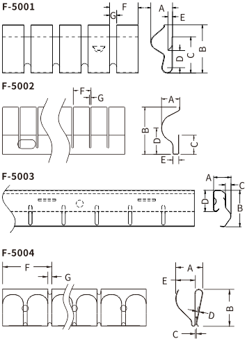 | FC@Part No | A | B | C | D | E | F | G | Material Thickness | Standard Length |
