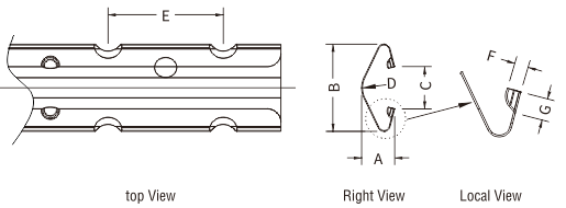 | FC@Part No | A | B | C | D | E | F | G | Material Thickness | Standard Length |