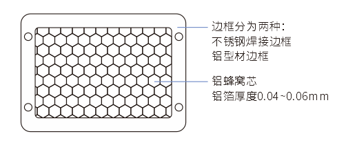 | 铝蜂窝材料 | 3003H18铝箔厚0.06mm | |